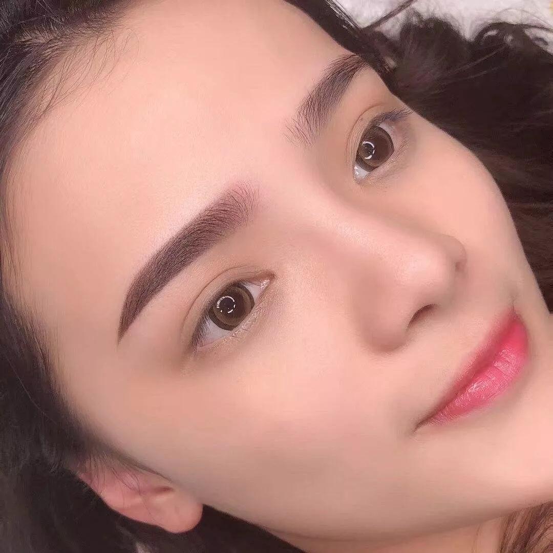 假如深度超過真皮層,就會使色料與皮內(nèi)蛋白酶發(fā)生化學變化而變色。色料濃度過深,將影響眉與膚色、發(fā)色的協(xié)調(diào)。原則上眉色盡可能與發(fā)色協(xié)調(diào),避免紋后眉色過于濃黑而造成兇相。能夠紋出眉色較自然、適宜的眉毛。