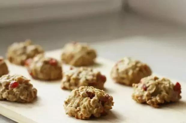 3)烤盤鋪油紙,將燕麥壓成小餅狀放入預(yù)熱160度的烤箱,烘烤15分鐘。
