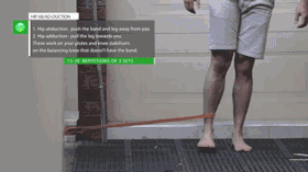 可同時加強(qiáng)雙腿膝關(guān)節(jié)的穩(wěn)定性的一個訓(xùn)練,把彈力帶綁到雙腳腳踝處,向一側(cè)走,然后再向反方向走