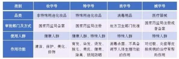 最后,我們用一張表總結(jié)一下“妝字號(hào)”“特字號(hào)”“消字號(hào)”“械字號(hào)”的區(qū)別。
